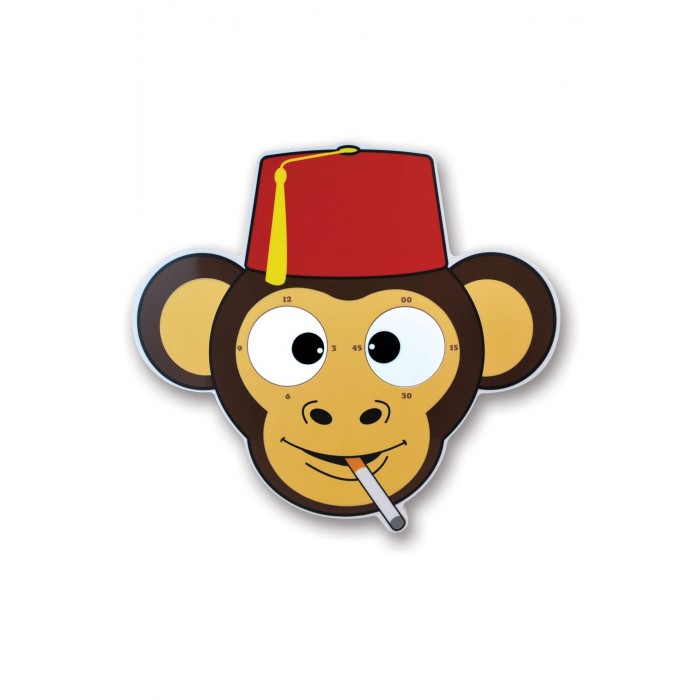 Този забавен часовник за стена се отличава с комична карикатура на маймуна с фес, пушеща цигара, докато показва колко е часа с въртящите си очи. Чудесен подарък за всеки.
