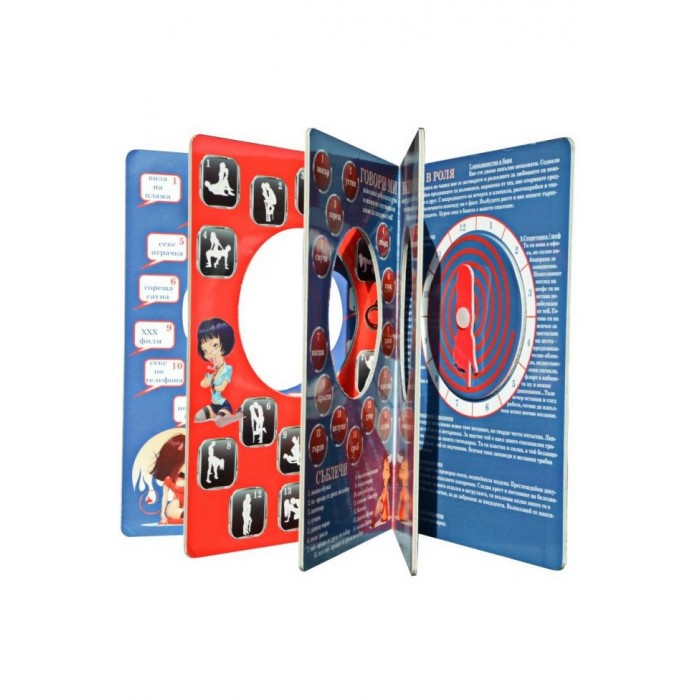 Книгата съдържа 8 игри с въртележка: КАЖИ..., НАПРАВИ..., ДОВЪРШИ..., СЪБЛЕЧИ..., ГОВОРИ МИ...,  ВЛЕЗ В РОЛЯ...,  СЕКС ПОЗИ и ИГРАЧКИ.