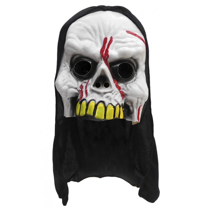 Маска Череп половин лице, латексова, с черна качулка. Подходяща за Хелоуин, парти, карнавал, училищни празненства и всякакви забави.