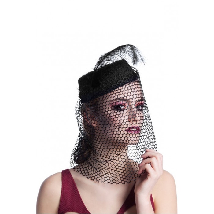 Шапка Черната вдовица с воалетка и перо е изработена от плат. Подходяща за парти, карнавал, Хелоуин и всякакви забавления.