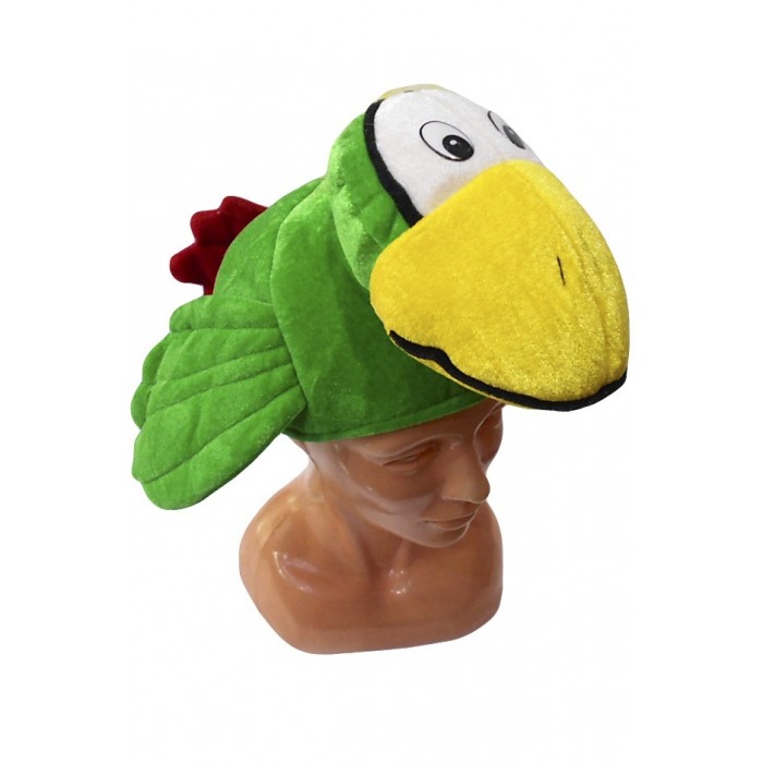 Шапка Зелена птица, плюш.Подходяща за парти и карнавал.
