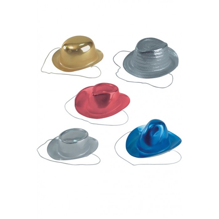 Шапка мини металик е изработена от пвц. Предлагат се различни модели в три цвята - сребърна, златна и синя. Подходяща е за Хелоуин, Коледа, Нова Година, маскарад, училищни празненства, парти, бал с маски и забави.