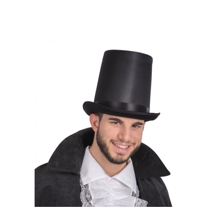 Шапка Цилиндър сатен, висок 20 см, черен. Подходящ за парти и карнавал и всякакви забавления.