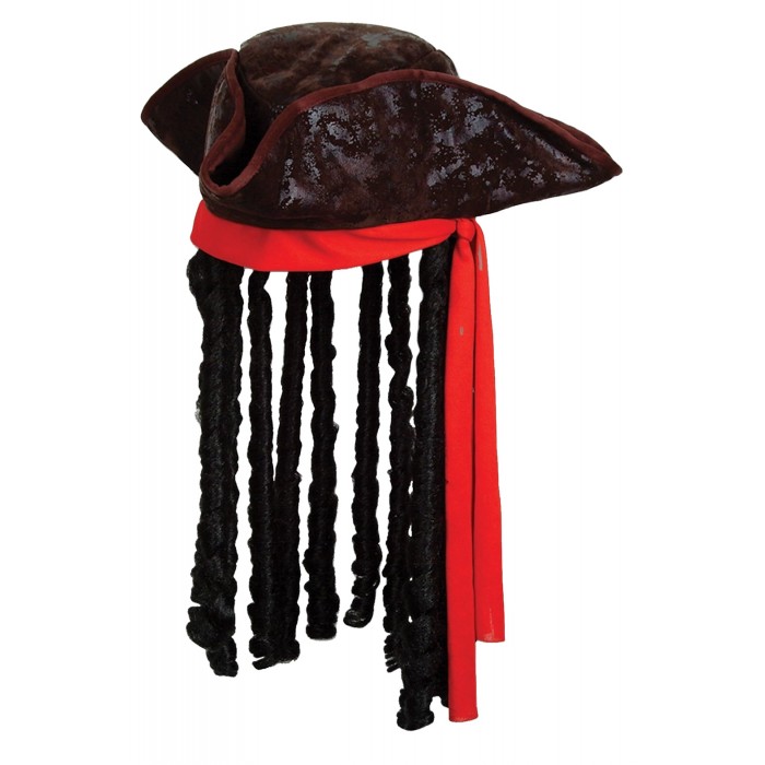 Кафява шапка Пират с черна коса. Подходяща за Хелоуин, парти, карнавал, училищни празненства и всякакви забавления.