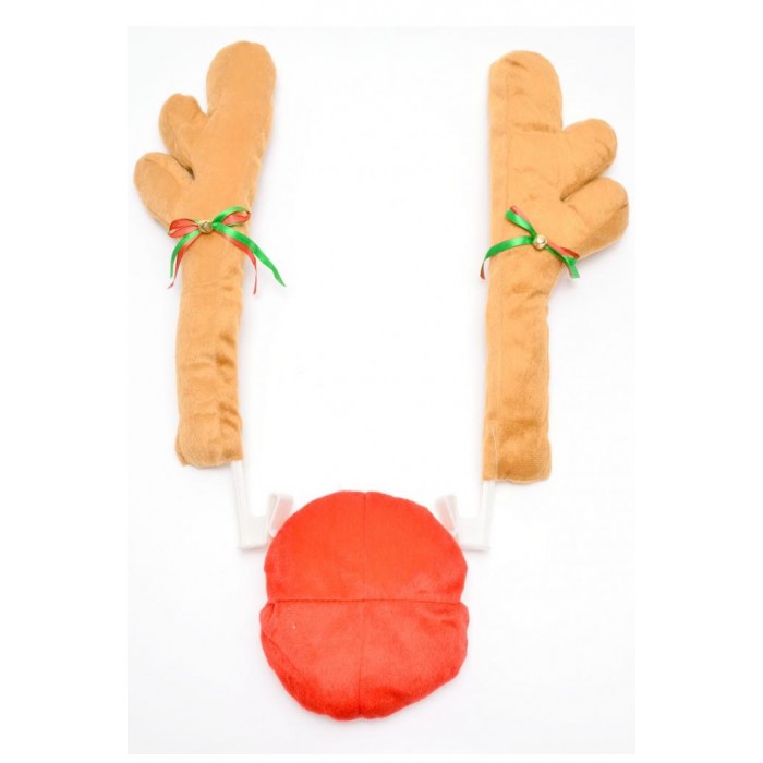 Забавна тематична украса за Вашия автомобил - комплект еленски рога и червен нос.