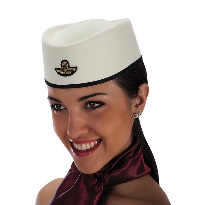 Шапка Стюардеса, бяла със черен кант е изработена от плат. Подходяща за парти, карнавал, Хелоуин и всякакви забавления.