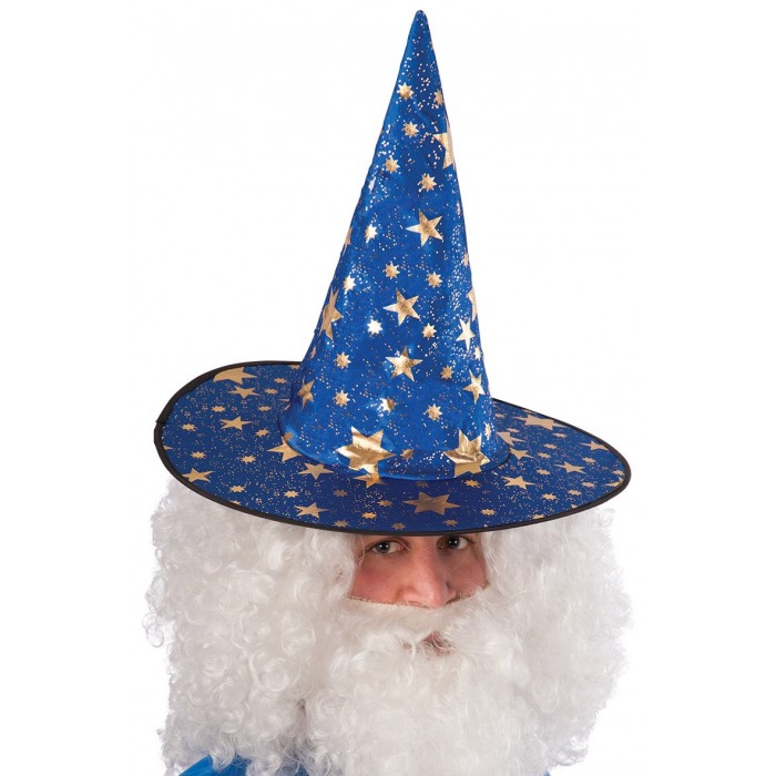 Шапка Вълшебник, синя със златни звезди е висока 35 см. Подходяща за Коледа, Нова Година, Хелоуин, парти, карнавал, училищни празненства и всякакви забавления.
