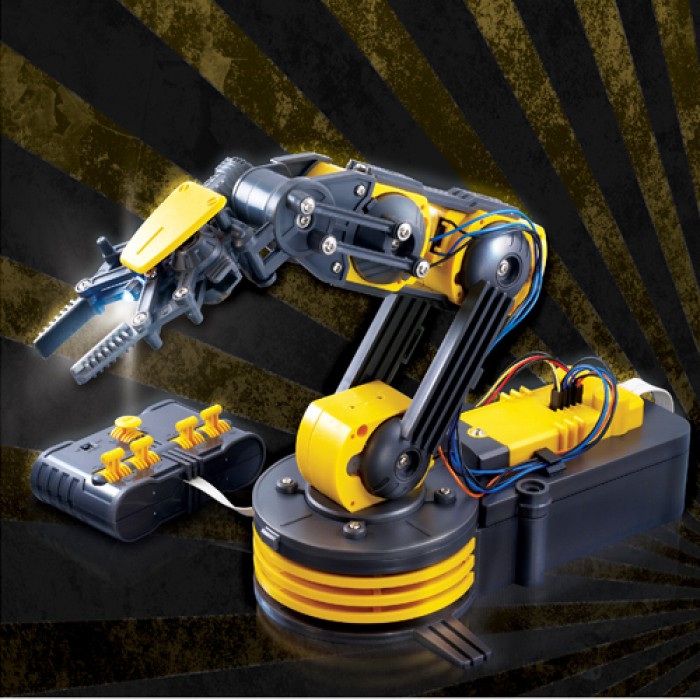 The five-way directional control allows the robot arm to grab lift position lower and release items smoothly and efficiently. A wired remote controller gives the user complete control over all of these functions and in addition to learning about robotic operation during the assembly process manually controlling the arm is the perfect way to learn more about how machines work. So start with this Build Your Own Robot Arm kit and who knows what you’ll be working on in the future!