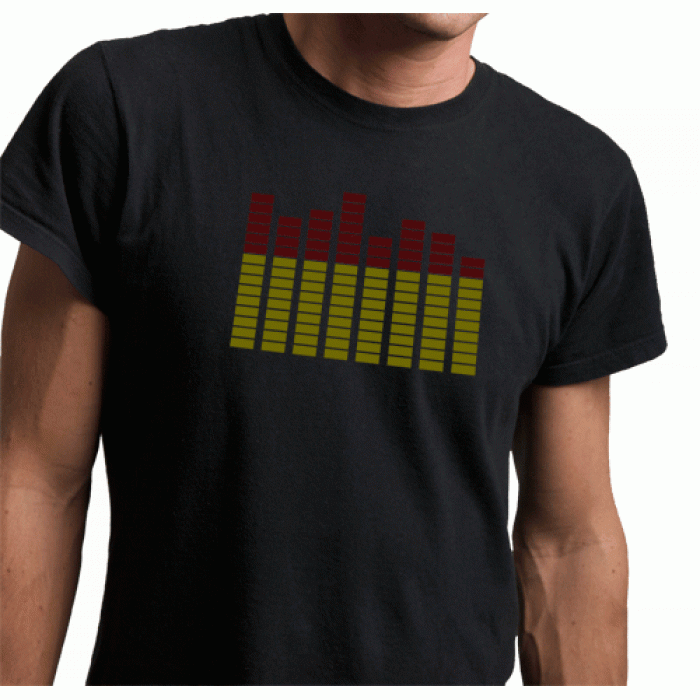 The Thumbs Up T-Qualizer T-Shirt is a shirt with a built in graphic equalizer panel that is sound sensitive. As the music beats, the shirts equalizer lights up to the beat of the music. Great for concerts, raves, parties etc. Size (chest width): Sma