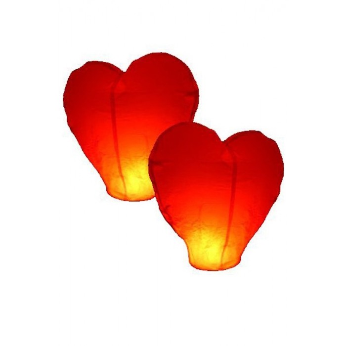 Небесен фенер с форма на сърце, червен цвят, с размери 38-60cm диаметър и 103cm височина, тегло 75g. Автентична ръчна изработка. Летящи в небето червени фенери сърца, като символ на любовта, ще направят празника ви незабравим. Перфектно допълнение за всякакви празненства, особено подходящо за Свети Валентин и сватби.