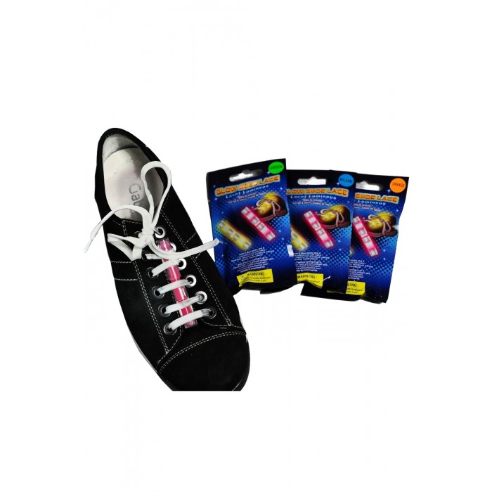Светещи пръчки за обувки, 2бр. в комплект. Размери: 7.7см, диаметър 1см. Цветове - зелен, отанжев, червен. Отворете непосредствено преди употреба, извийте веднъж за да пречупите пръчката след това разклатете енергично. За еднократна употреба.Подходящо за 3+ години.