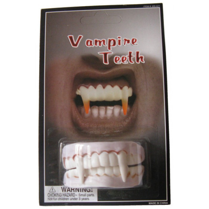 Зъби Вампир, състоящи се от горна и долна част. Подходящи за Хелоуин, парти, карнавал, училищни празненства и всякакви забавления.