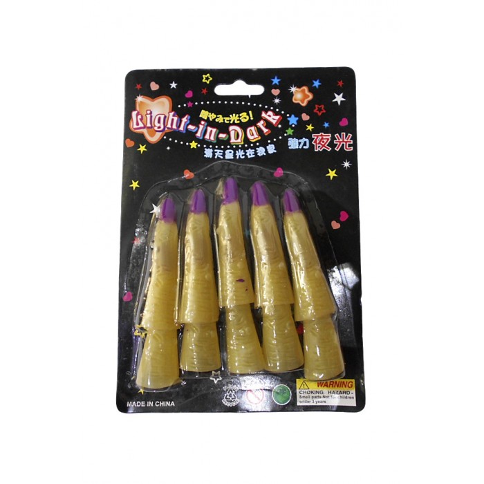 Светещите пръсти с нокти са 10 броя, изработени са от пвц и светят на тъмно. За целта е необходимо преди употреба да се оставят за малко на пряка светлина. Подходящи са за Хелоуин, парти, карнавал, шеги, закачки и правене на номера. Неподходящи за деца под 3 години.