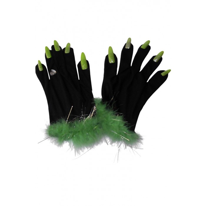 Ръкавици с нокти и марабу в зелен, червен или лилав цвят. Подходящ аксесоар за Хелоуин, парти, карнавал, училищни празненства, балове и всякакви забави.