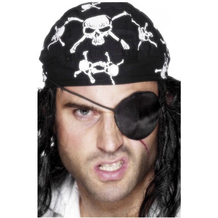 Сатенена пиратска превръзка за око, изработена от плат. Подходящ аксесоар за Хелоуин, парти, карнавал, училищни празненства и всякакви забави.