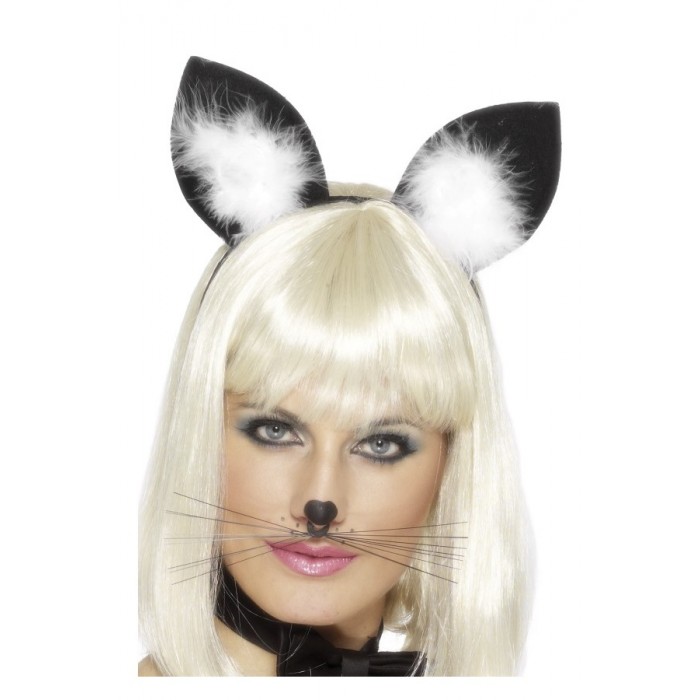 Уши Котка на диадема са изработени от плат и марабу. Подходящ аксесоар за Хелоуин, парти, карнавал, училищни празненства и всякакви забавления.