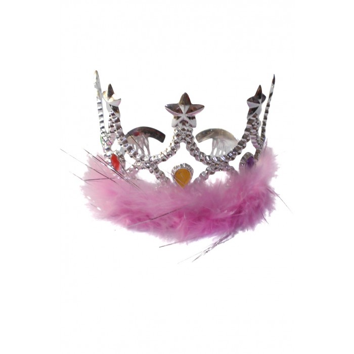 Корона на принцеса с марабу, розова е подходящ аксесоар за парти, карнавал, училищни празненства и всякакви забавления.