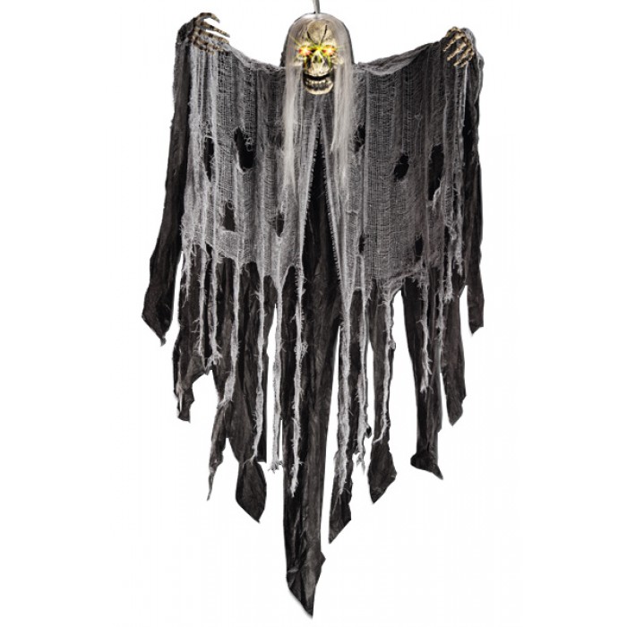 Скелет със светещи очи е изработен от плат и нетоксични материали. Подходящ е за декорация за Хелоуин и други забавления.