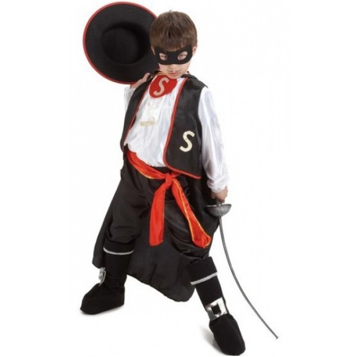 Детски костюм Зоро е предназначен за момчета от 6 до 10 години. Състои се от риза, панталон, наметало, шапка, колан и домино. Подходящ за Хелоуин, парти, карнавал, училищни празненства и забави.