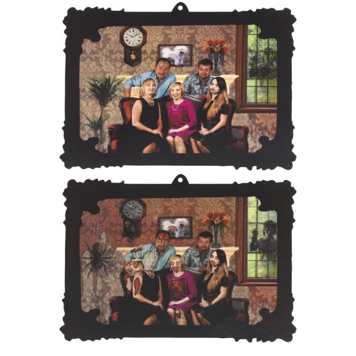 3D зловеща, променяща се картина "Семеен портрет" за стена. Подходяща за декорация за Хелоуин и други забавления.Размери: 44 х 31 см
