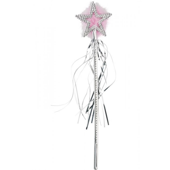 Пръчка на фея, сребърна с розово марабу и ресни е подходящ аксесоар за парти и карнавал.