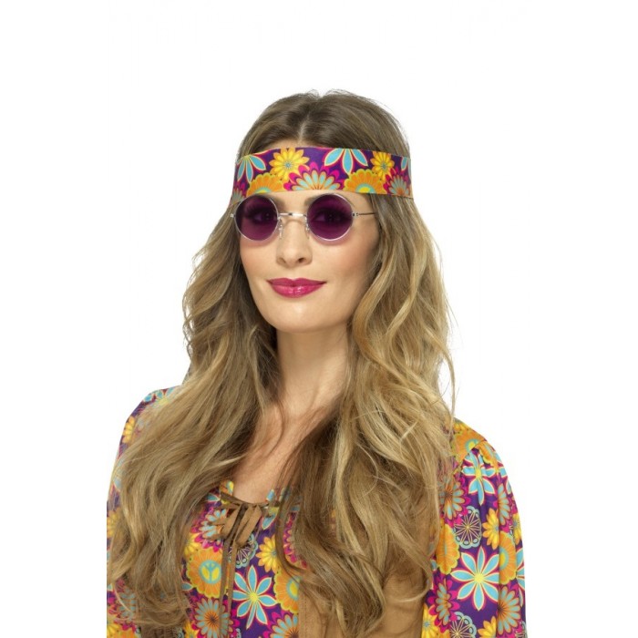 Очила Хипи с метални рамки се предлагат в три цвята - синьо-зелени, оранжеви и лилави. Подходящ аксесоар за Хелоуин, парти, карнавал, училищни празненства и всякакви забавления.