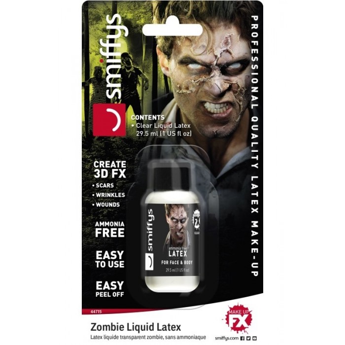 Течен Латекс за кожа без амоняк, бял - 29,57 мл. Използвайте, за да създадете специални ефекти върху кожата (белези, рани и други).Нанесете няколко слоя с гъба като потупвате, докато получите желаното удебеляване и форма на кожата.Можете да видите видео с инструкции за постигане на зомби ефект ТУК.