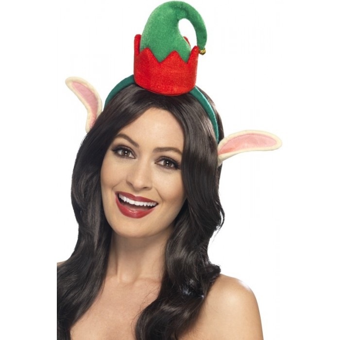 Шапка Коледна Елф на диадема, с уши е изработена от плат и пвц. Подходяща е за Коледа и Нова Година.