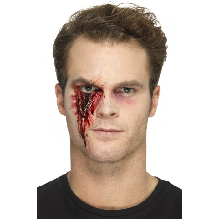 Релефна татуировка, имитираща разтворен цип - белег под окото се предлага в комплект с 1.5 мл течно лепило за кожа, с което да залепите татуировката. Изработена от натурален каучуков латекс. Особено ефектен и бърз начин да се включите в празнуването на Хелоуин.Начин на употреба:1. Залепете татуировката върху чиста и суха кожа с помощта на лепилото в комплекта.2. За по-добър ефект се снабдете с грим и изкуствена кръв, които да приложите по краищата и около татуировката.