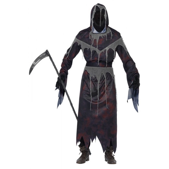 Мъжки костюм Смърт се състои от дълга роба с качулка, ръкавици, колан и маска, изработени от плат. Подходящ за Хелоуин, парти, карнавал, училищни празненства и забави. Предлага се в размер L.