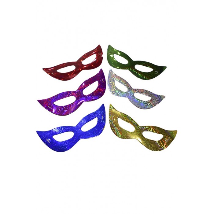 Домино издължено, изработено от лъскава, холограмна хартия, 6 броя в опаковка. Подходящ аксесоар за Хелоуин, парти, карнавал, училищни празненства, Рожден ден, балове и всякакви забавления.