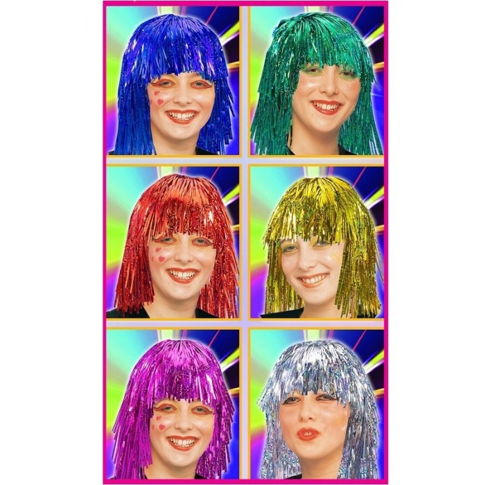 Парти перука Диско се предлага в следните цветове: злато, сребро, синьо, зелено, червено и цикламено. Подходяща за парти, карнавал, Хелоуин, училищни празненства и всякакви забави.