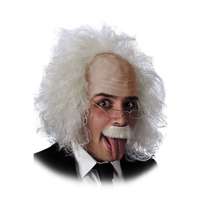 Перука Алберт Айнщайн, бяла. Предлага се в комплект с очила и мустаци. Подходяща за Хелоуин, Коледа, Нова Година, училищни празненства, парти и карнавал.