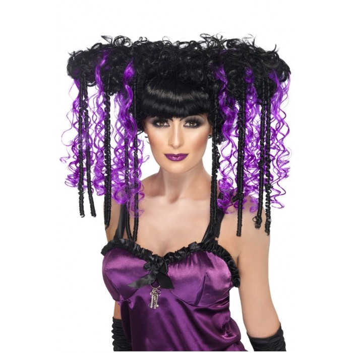 Перука Готик, Емо стил, черно-лилава с къдрици е изработена от изкуствен косъм. Подходяща е за Хелоуин, Коледа, Нова Година, маскарад, училищни празненства, парти, бал с маски и забави.