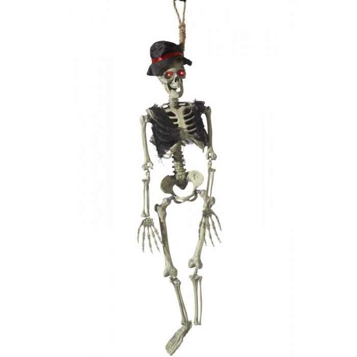 Скелет - тресящ се, със звук и светещи очи е изработен от пластмаса и е с височина 90 см. Подходящ е за декорация за Хелоуин и други забавления.
