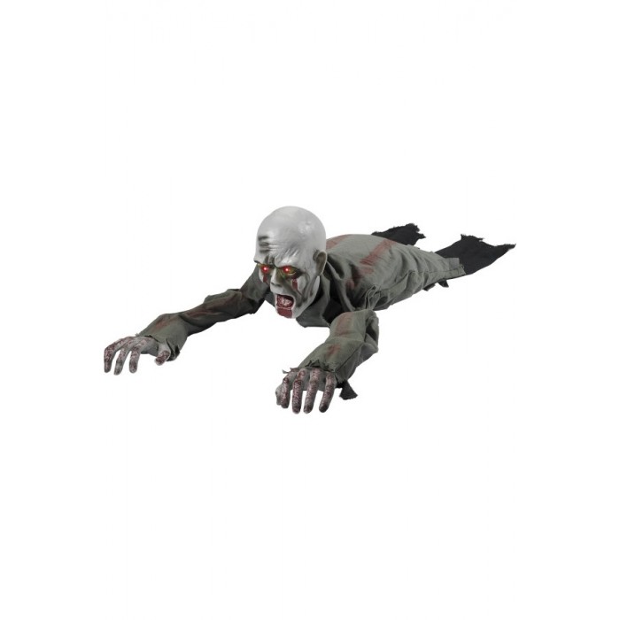 Зомби, пълзящо, със звук и светещи очи е изработен от пластмаса и е с размери 110х30х30 см. Подходящ е за декорация за Хелоуин и други забавления.
