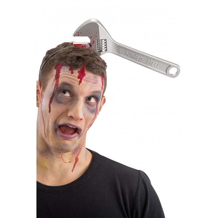 Забит в главата гаечен ключ, пластмасов. Подходящ аксесоар за Хелоуин, парти, карнавал, училищни празненства и всякакви забавления.