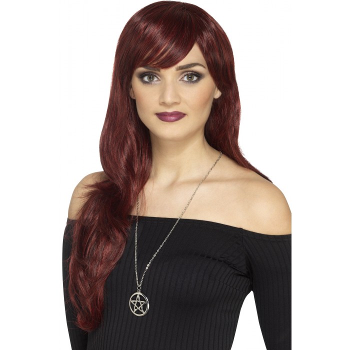 Окултно колие с Пентаграм, сребърно е изработено от метал. Подходящ аксесоар за Хелоуин, парти, карнавал и всякакви забавления.