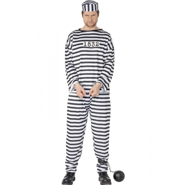 Мъжки костюм Затворник се състои от блуза, панталон и шапка, изработени от трико. Подходящ за Хелоуин, парти, карнавал, училищни празненства и забави. Предлага се в размер XL.