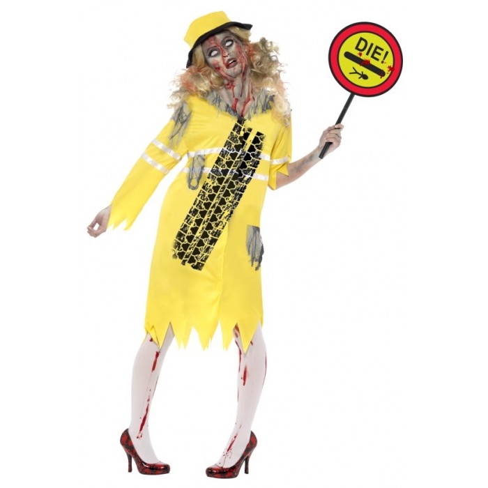 Дамски костюм Момиче с близалка-Зомби се състои от рокля, шапка и близалка, изработени от плат. Подходящ за Хелоуин, парти, карнавал, училищни празненства и забави. Предлага се в размер S.