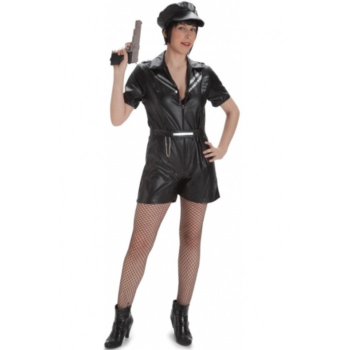 Дамски костюм Полицайка включва гащеризон, полицейска шапка и колан, изработени от мека изкуствена кожа.Подходящ за Хелоуин, парти, карнавал, училищни празненства и забави. Предлага се в размер 44.