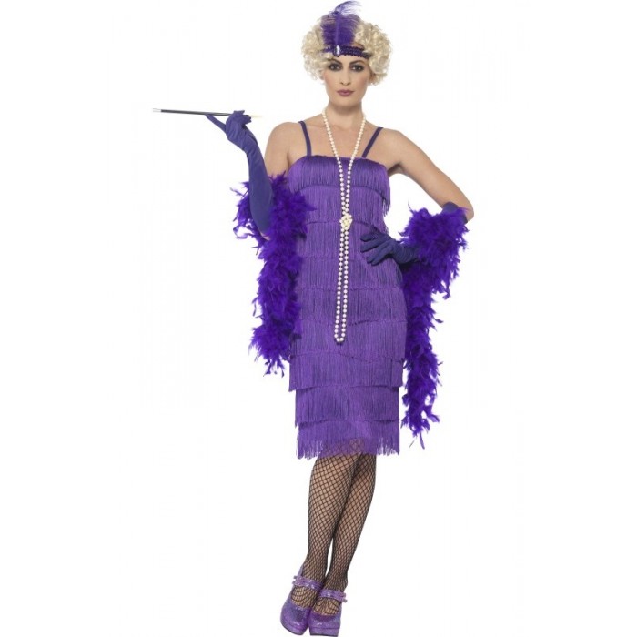 Дамски костюм Кабаре се състои от рокля, лента за глава с перо и ръкавици, изработени от плат. Подходящ за Хелоуин, парти, карнавал, училищни празненства и забави. Предлага се в лилав цвят и размери S, M, L, X1 и X2.