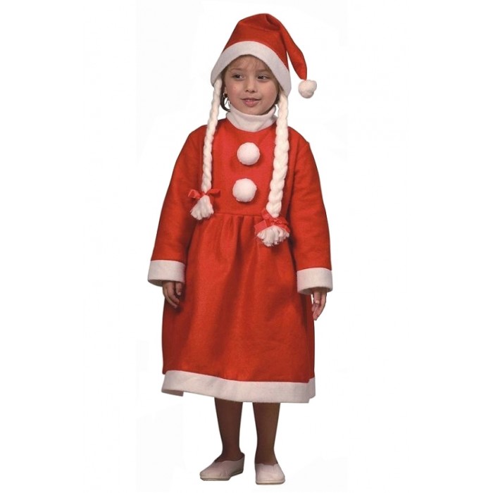 Коледен костюм - детски. Състои се от рокля и шапка. Предлага се в два размера: за 3-4 и 6-7 годишна възраст.