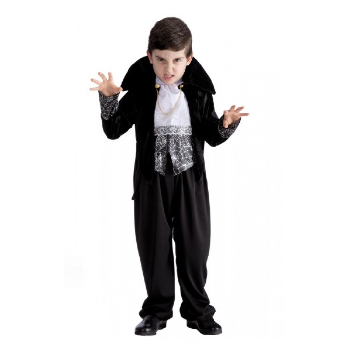 Детски костюм костюм Дракула се състои от риза с елек и панталон. Предлага се в два размера: за 6-7 и 8-9 годишна възраст. Подходящ за Хелоуин, парти, карнавал, училищни празненства и забави.