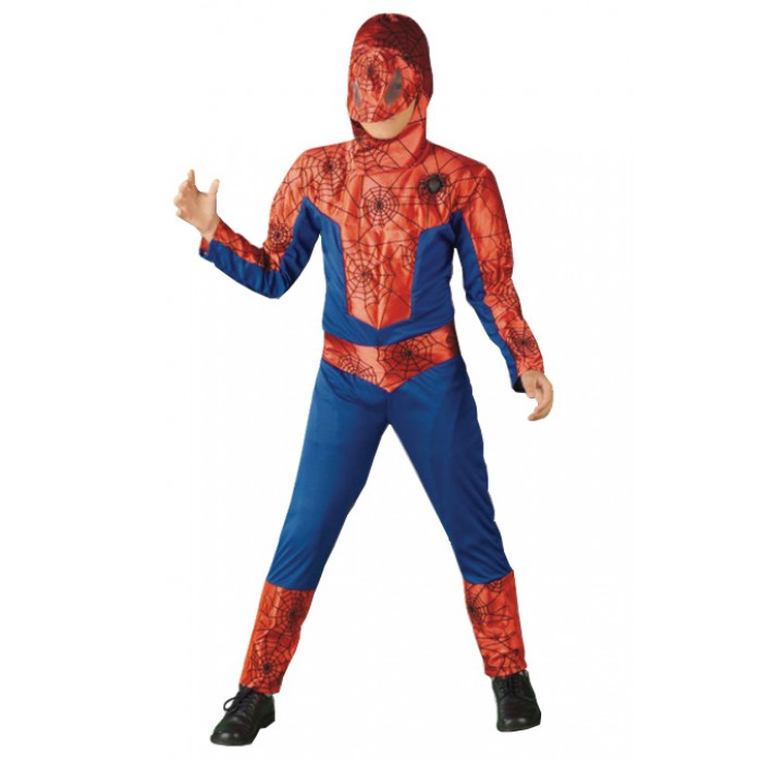 Детски костюм Спайдърмен се състои от цял гащеризон, колан и качулка. Предлага се в три размера за деца от 3-5, 6-7 и 8-10 години. Подходящ за Хелоуин, парти, карнавал, училищни празненства и забави.