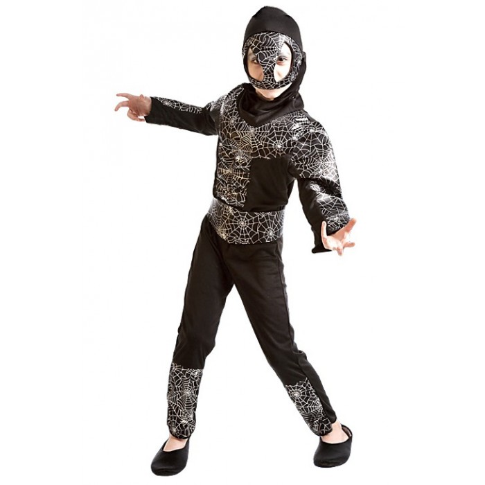 Детски костюм Спайдърмен, черен се състои от цял гащеризон, колан и качулка. Предлага се в два размера за деца на 6 и 10 години. Подходящ за Хелоуин, парти, карнавал, училищни празненства и забави.