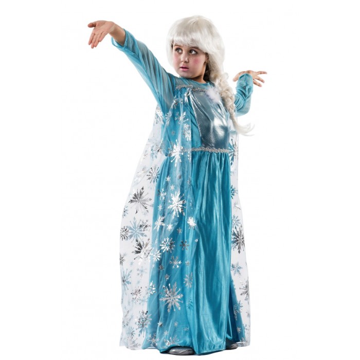 Детски костюм принцеса Елза от Замръзналото кралство се състои от рокля, изработена от плат. Предлага се в три размера: за 3-4, 5-7 и 8-10 години. Подходящ за Коледа, Нова Година, Хелоуин, парти, карнавал, училищни празненства и забави.