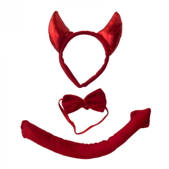 Комплект Дявол включва диадема с рога, опашка и папийонка. Подходящ аксесоар за Хелоуин, парти, карнавал, училищни празненства и всякакви забавления.