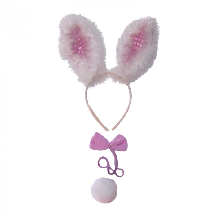 Комплект Заек включва диадема с уши, опашка и папийонка.Подходящ аксесоар за Хелоуин, парти, карнавал, училищни празненства и всякакви забавления.
