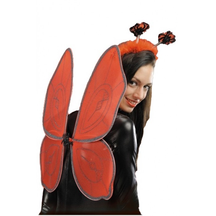 Комплект червени крила и диадема с червено марабу и паяци. Подходящ аксесоар за Хелоуин, парти, карнавал, училищни празненства.
